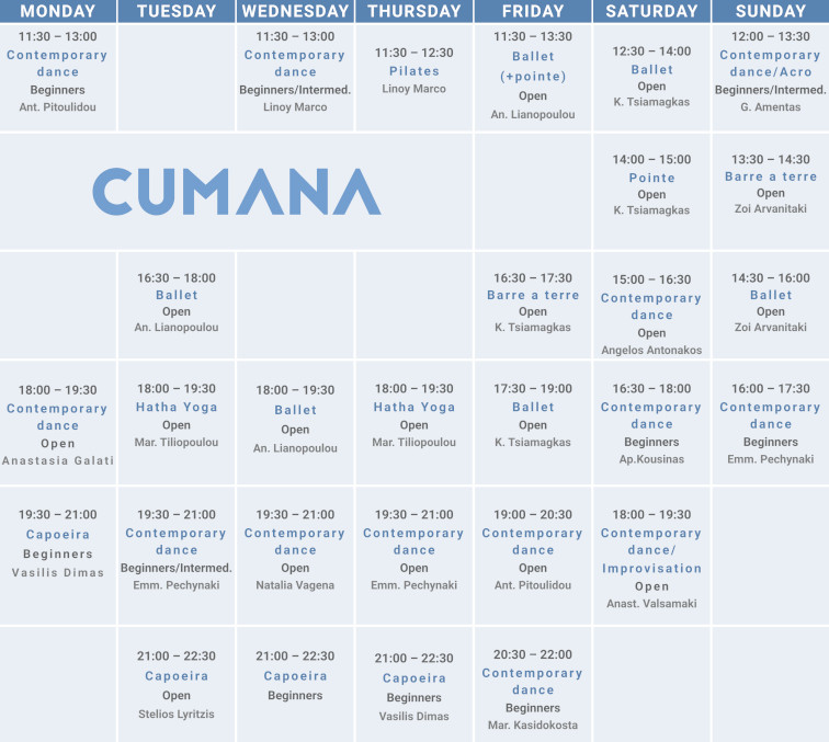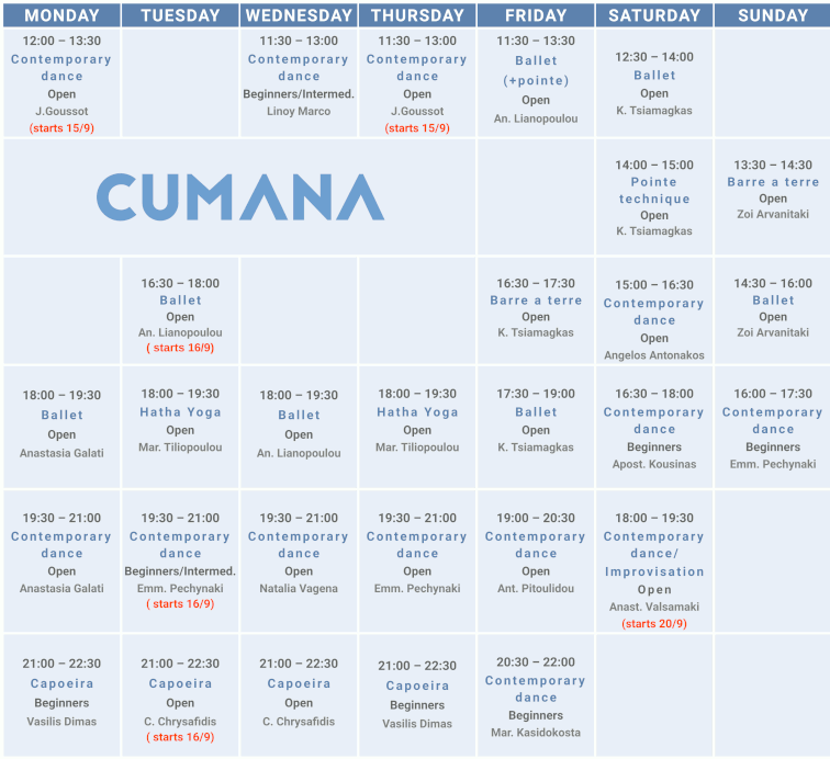 Σε περίπτωση ακύρωσης μιας πρόβας / μαθήματος στείλτε e-mail στο info@cumana.gr και ενημερώστε σχετικά.